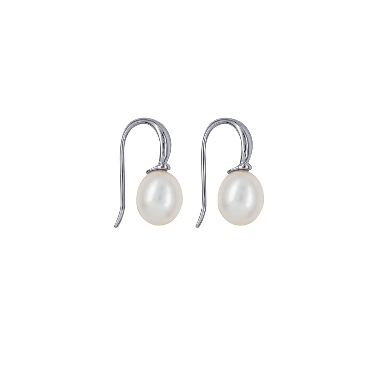 Timeless elegance meets contemporary design in these exquisite sterling silver drop earrings. Featuring lustrous 8.5–9mm oval freshwater cultured pearls, they are gracefully suspended from an intricate cubic zirconia-adorned setting, adding a touch of brilliance to every movement.