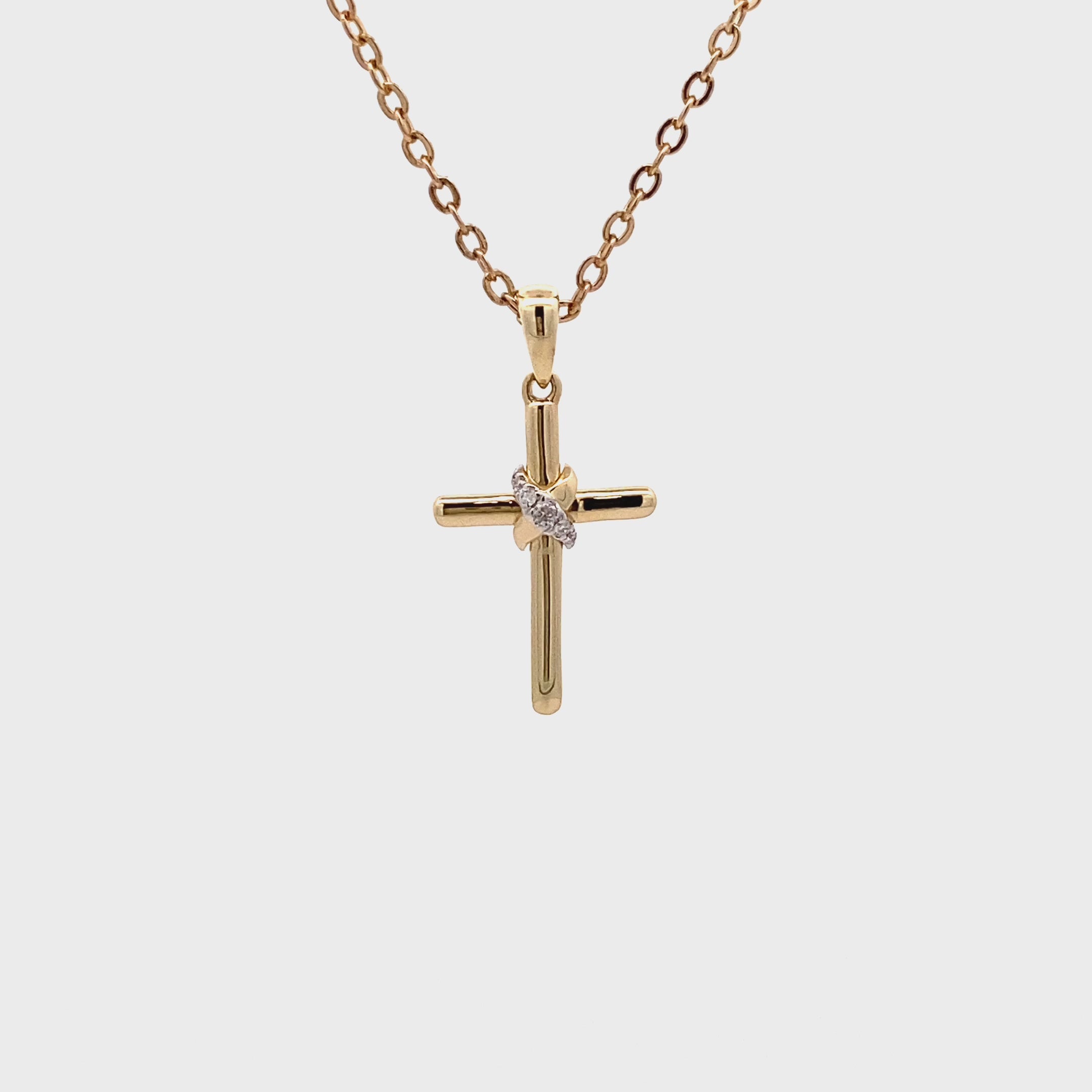 Graceful 9ct Gold Diamond Cross Pendant