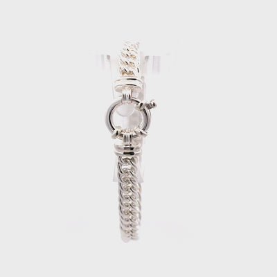 A timeless accessory that adds a touch of elegance to any outfit. Made in Sterling Silver with meticulous attention to detail, this stunning piece is perfect for those who appreciate sophisticated fashion. The double curb bracelet boasts a modern take on a traditional design, featuring impeccably interlinked links that create an eye-catching pattern.