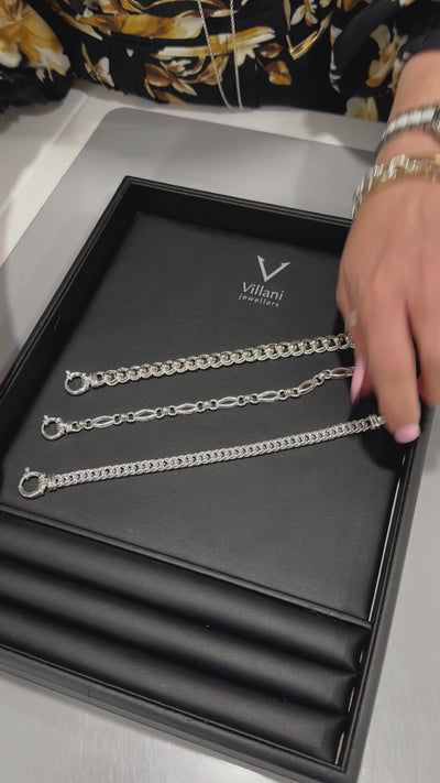 Introducing our exquisite chain bracelet, a timeless accessory that adds a touch of elegance to any outfit. Made in Sterling Silver with meticulous attention to detail, this stunning piece is perfect for both men and women who appreciate sophisticated fashion.The roller link bracelet boasts a stylish design, featuring impeccably interlinked links that create an eye-catching pattern.